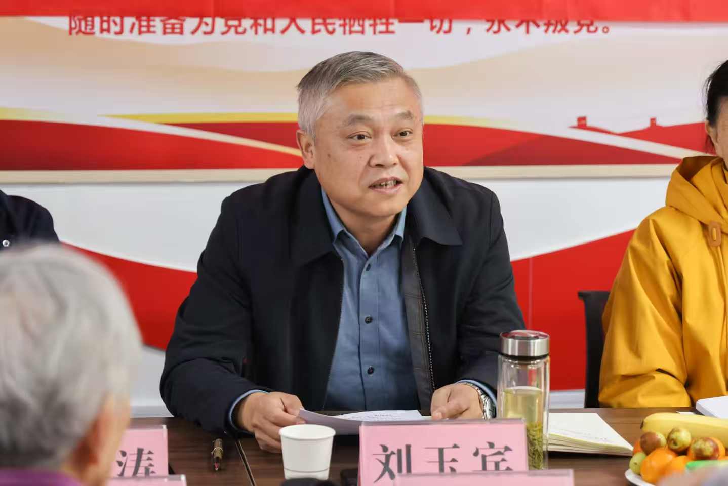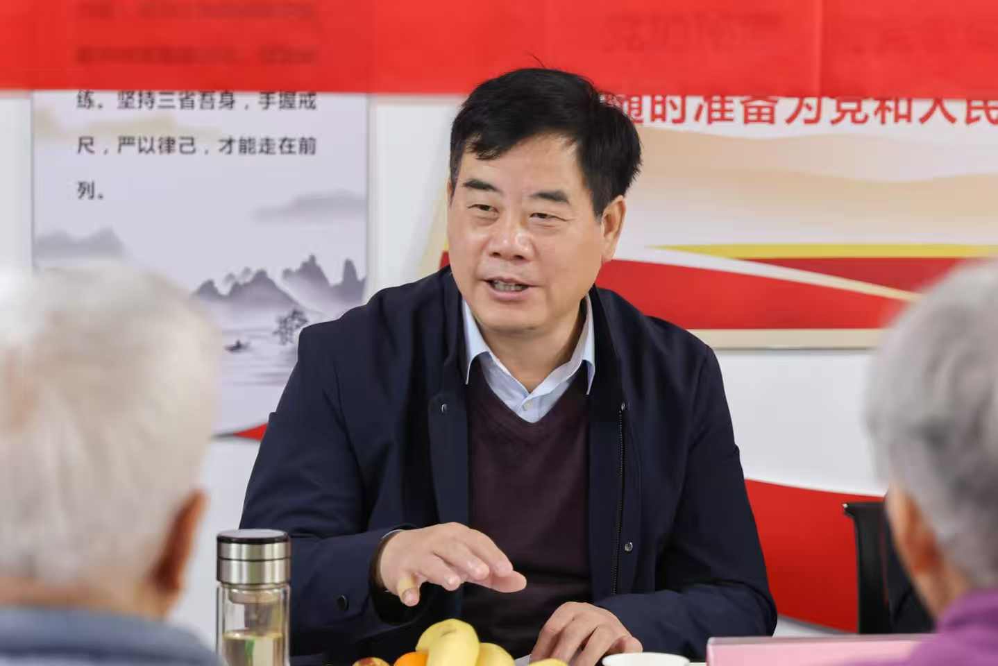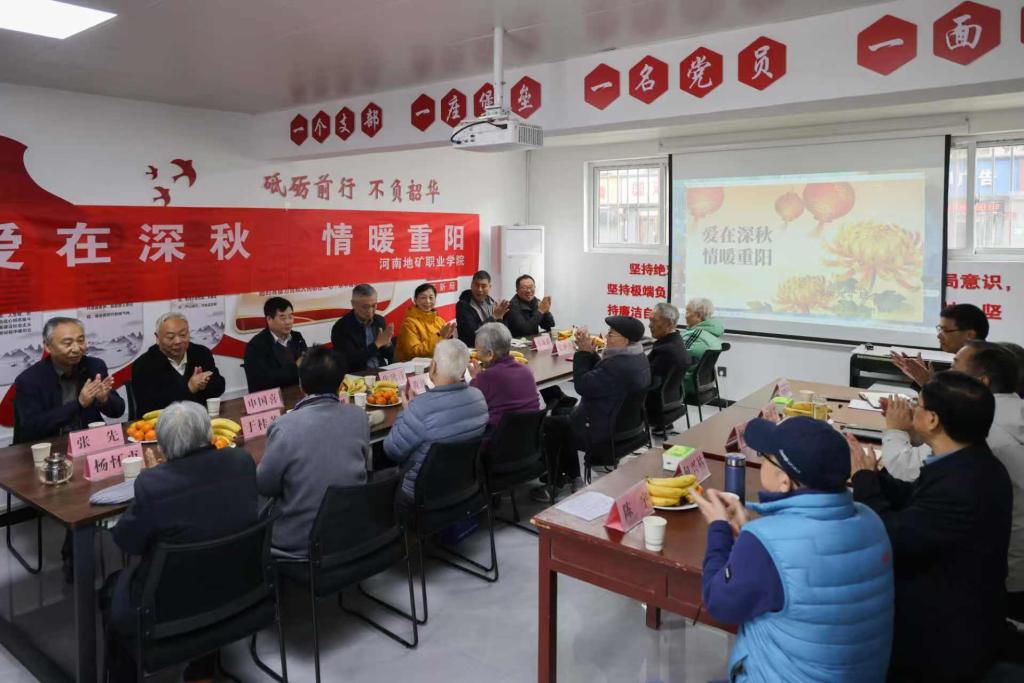 重阳节当天,党委书记焦洪涛,党委副书记、校长刘玉宾带领有关处室负责人看望了离退休老同志,并与他们进行了交流座谈。会上,焦洪涛向老同志们送上节日问候和诚挚祝福,并介绍了学校的发展现状,重点工作推进情况和未来发展思路,表示学校党委将一如既往地做好服务保障工作,让老同志们能够安度晚年。刘玉宾表示,离退休老同志是学校的宝贵财富,曾为学校的发展做出了卓越贡献,也积累了宝贵经验,值得我们尊敬和继承。同时也希望离退休老同志继续发光发热,支持学校发展。大家深刻感受到了节日的祝福和学校的温暖,对学校取得的成绩给予了充分的肯定,并表示将珍惜幸福生活,心系学校,建言献策,做出新贡献。会上还宣读了全国关工委表彰文件,我校黄体兰老师荣获先进个人;并为五位由河南省地矿局授予的“忠诚奉献地质人”代表颁发了证书和奖章,展现了离退休老同志老有所为的精神风采,座谈交流为系列活动画上了圆满的句号。